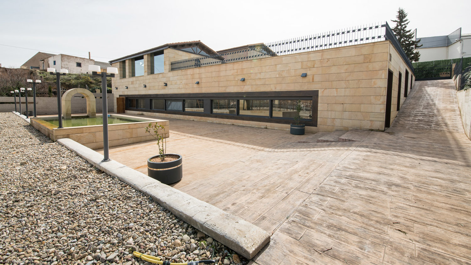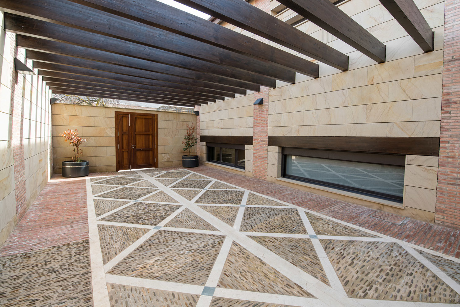 Dieser sehr harte, frostbeständige und äußerst vielseitige Stein wird für alle Arten von massiven Arbeiten, Landschaftsgestaltung, Fassadenverkleidungen und andere viele architektonische Elemente verwendet.