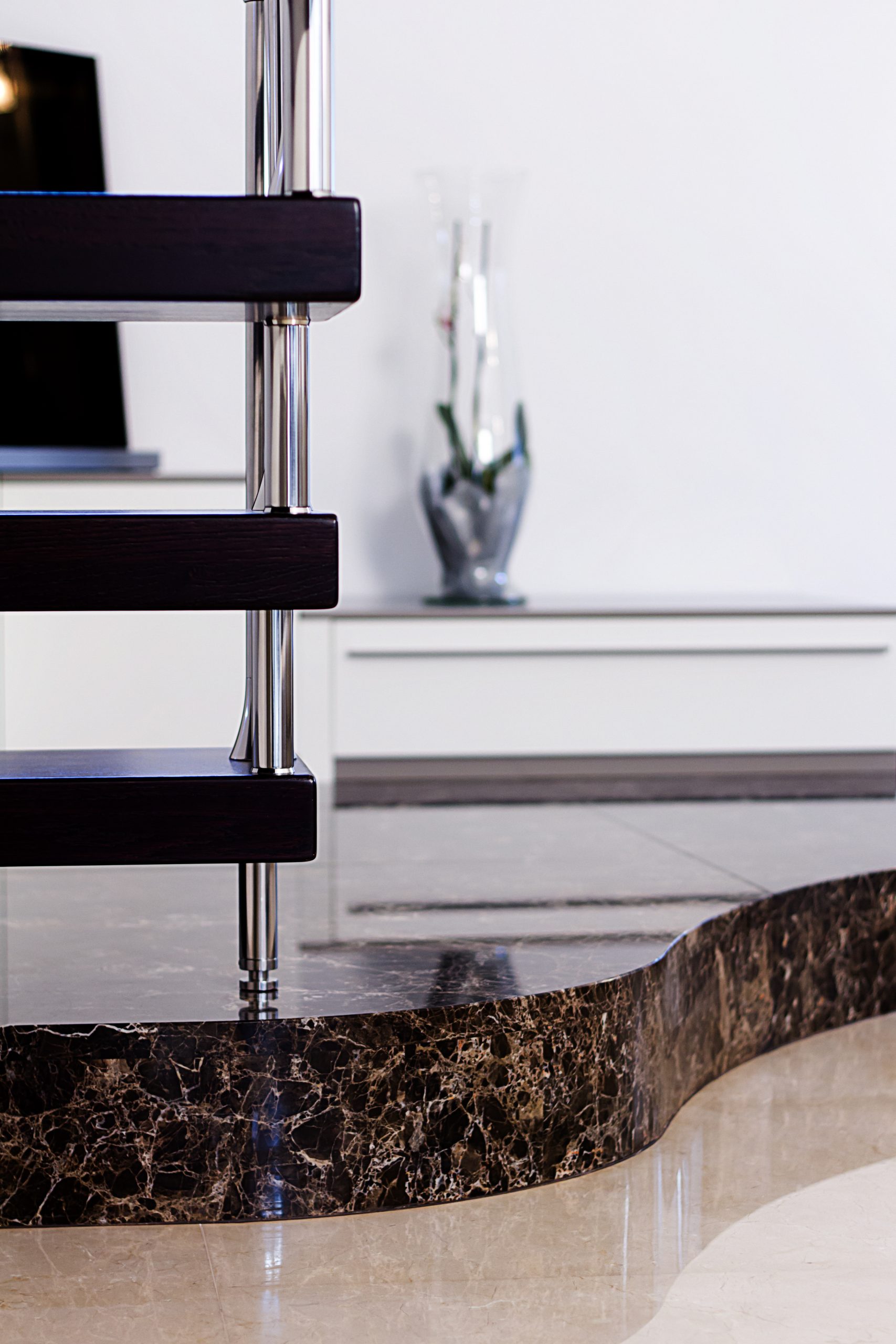 Seine Struktur besteht aus zahlreichen Zellen in verschiedenen Brauntönen (je nach gewählter Sorte heller oder dunkler), die von einer feinen, gleichmäßigen weißen Maserung durchzogen sind, die ihm Harmonie und Leuchtkraft verleiht und ihn zu einem beliebten Stein bei Innenarchitekten auf der ganzen Welt macht.