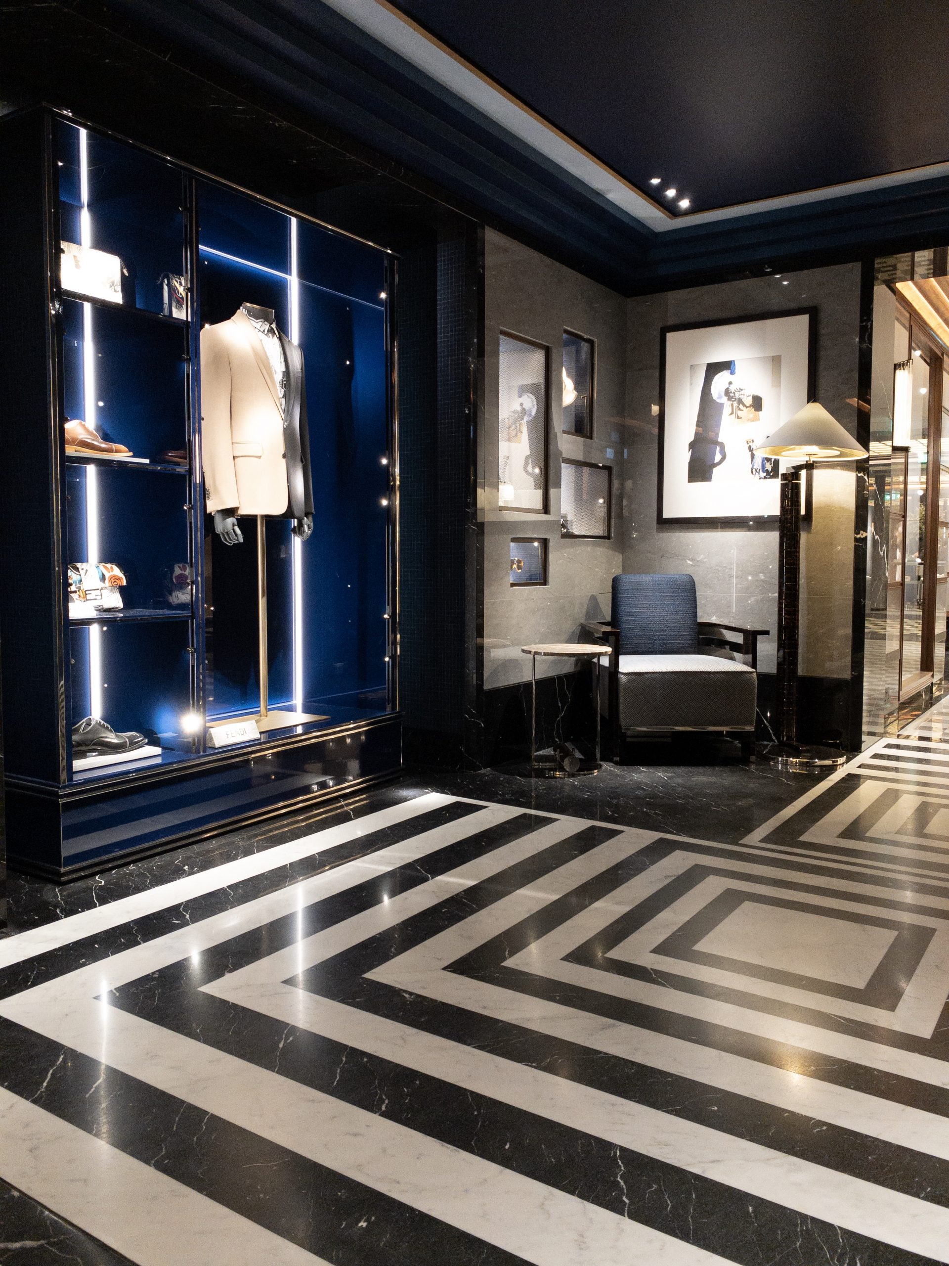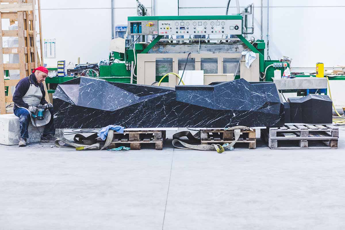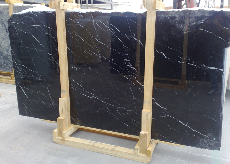 Mit einer feinen, kompakten Körnung und einem intensiven, klaren schwarzen Farbton sowie weißen Adern, die je nach dem Teil des Steinbruchs, in dem er abgebaut wird, mehr oder weniger häufig auftreten, wird er oft in Kombination mit weißem Carrara-Marmor verwendet, um einen nunmehr klassischen Kontrast zu entwerfen.