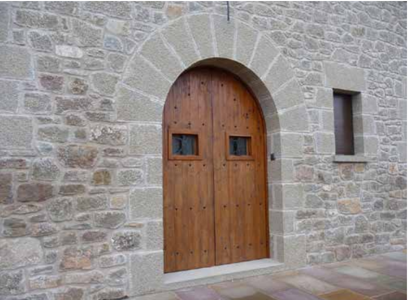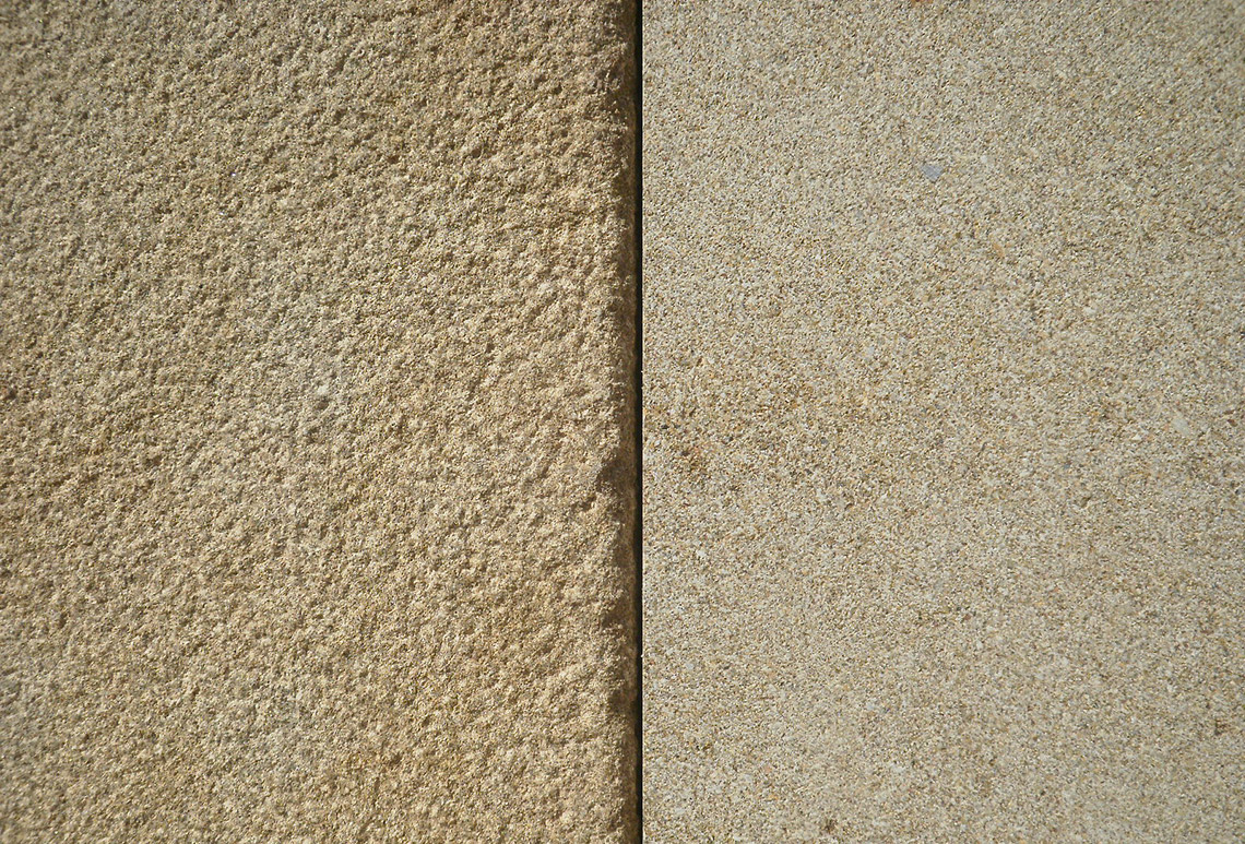Dieser sandstein aus Katalonien, abgebaut in der nähe von Barcelona, zeichnet sich durch seine weiche graue Farbe aus, die sich einem bräunlichen Ton nähert, und seine grobe Körnung.