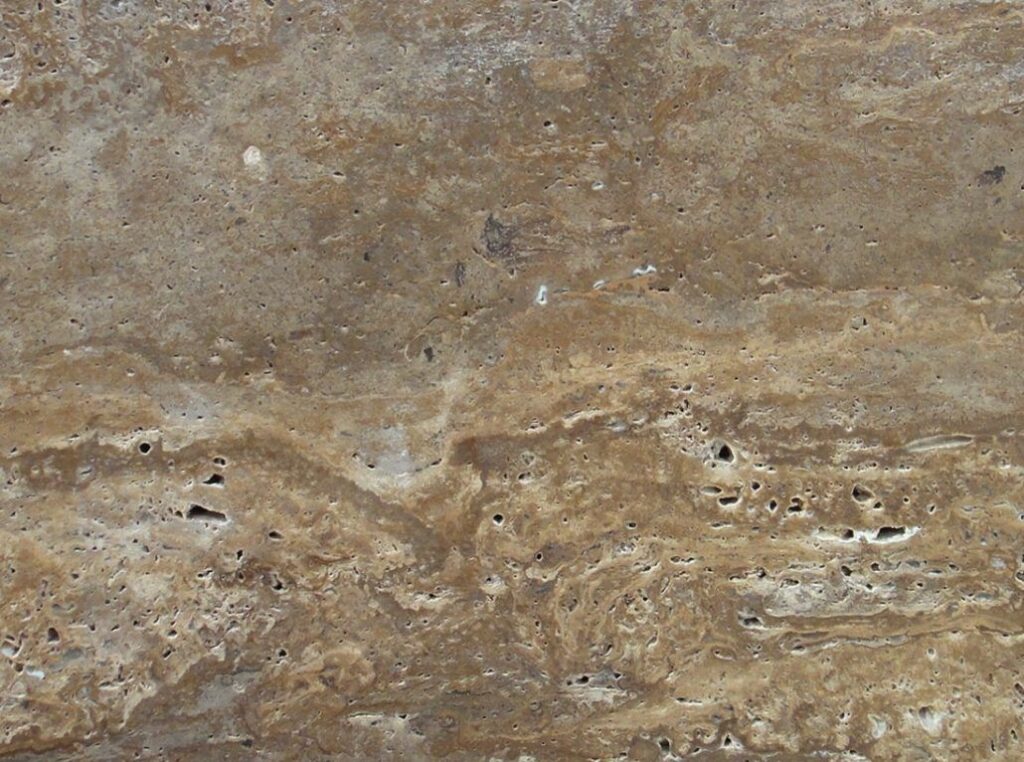 Travertino Olivillo ist ein Karbonatgestein mit bräunlichen Tönen, die von Beige bis Ocker reichen und durch orange und sogar Grautöne gehen. Seine hellbraune Basis ist mit einer unendlichen Anzahl von etwas helleren Bereichen punktiert, die eine chromatische Dissonanz darstellen, die von Liebhabern der Natur sehr geschätzt wird.
