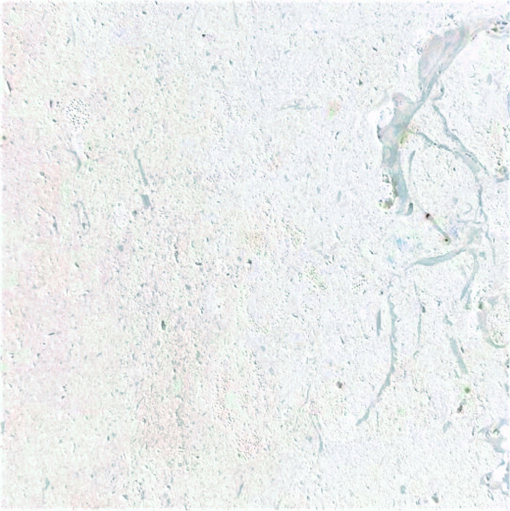 Pierre calcaire extraite à Murcie, en Espagne, caracrérisée par sa couleur blanche parsemée d’incrustation de fossiles.
